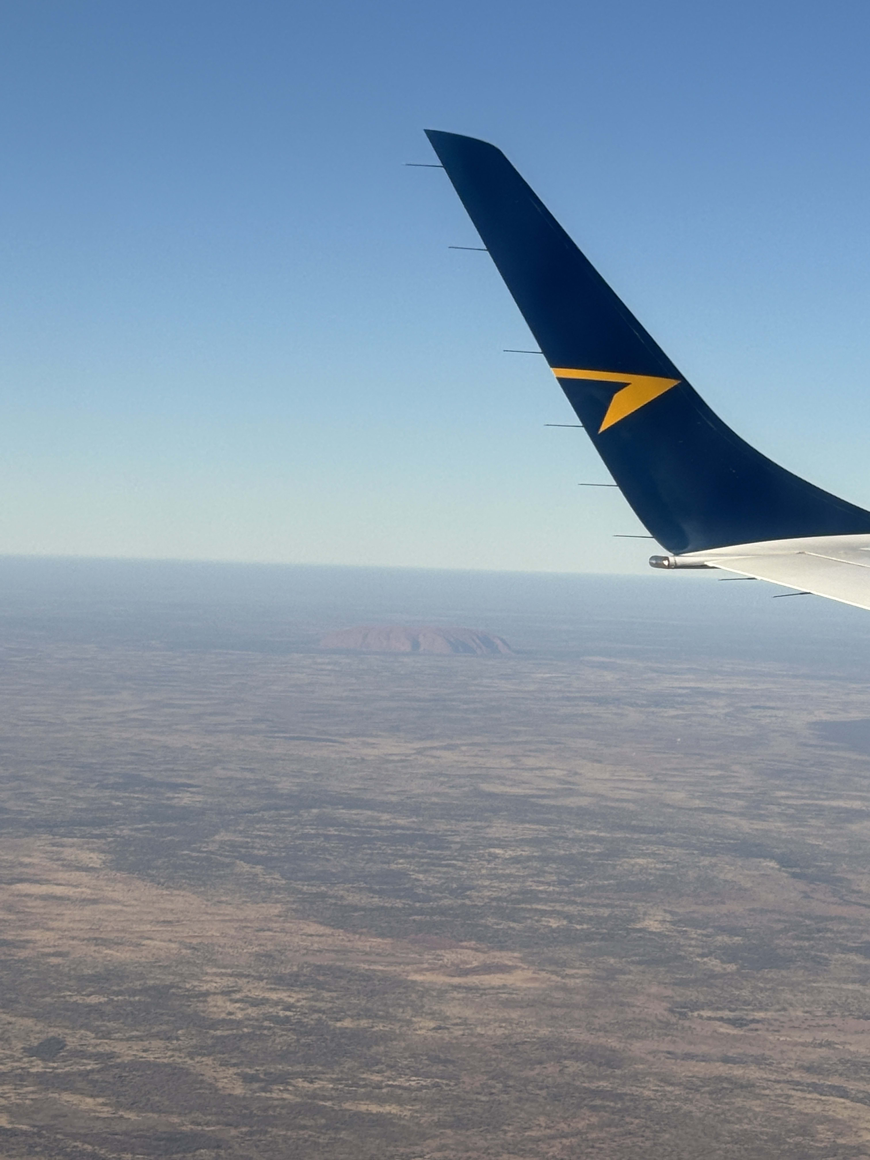 着陸の少し前、窓の外にウルルの姿が見えたときは思わず前のめりに。