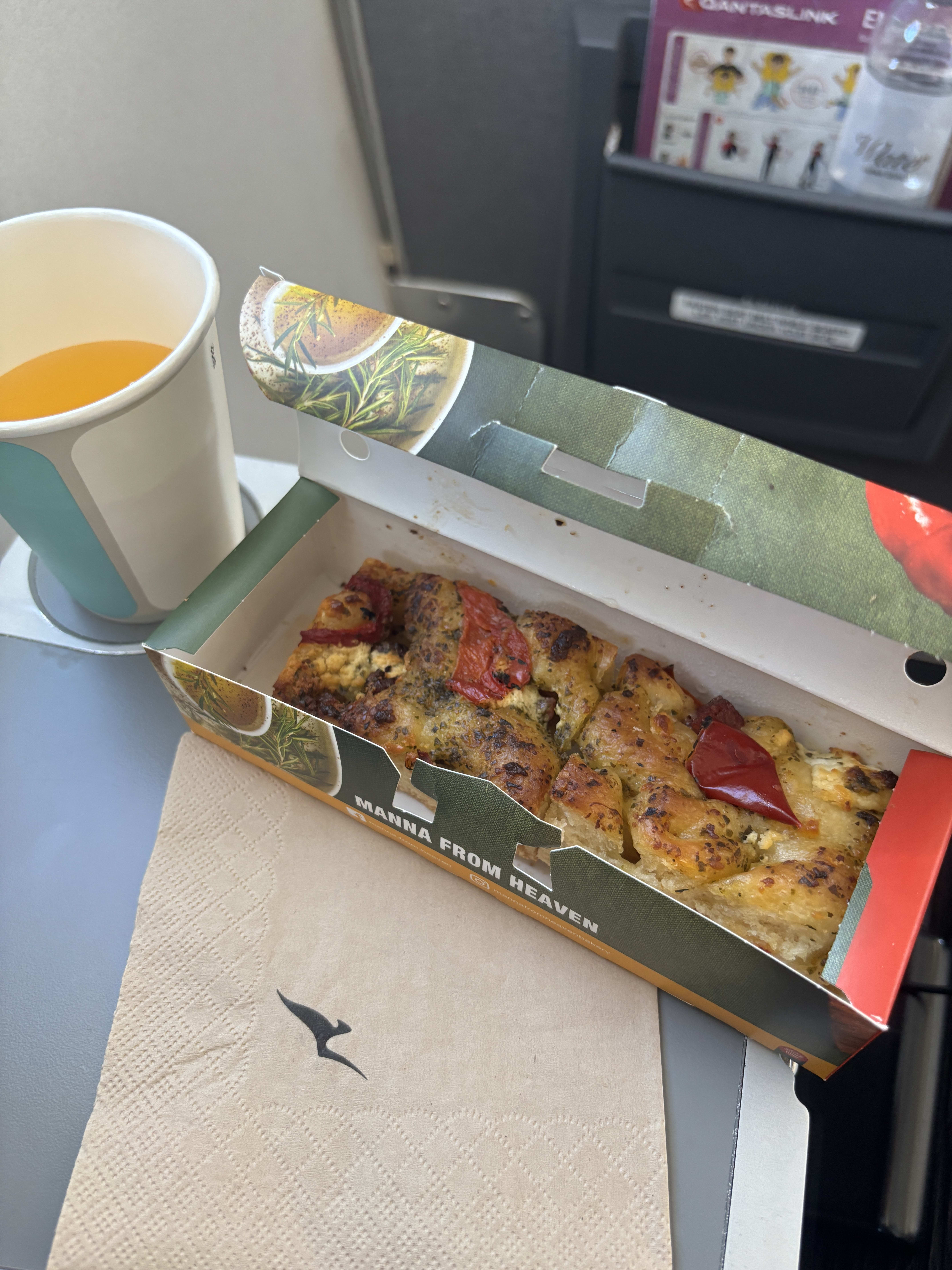 早朝便でしたが、機内では軽食と飲み物が出て、ちょっとした朝ごはん代わりになりました。