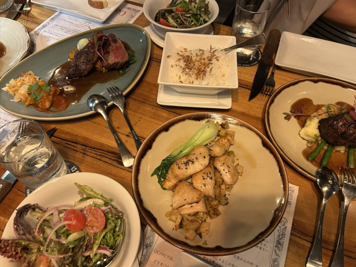 オーストラリアの先住民族の知恵から生まれた、伝統的な栄養価の高い在来食材”ブッシュフード”の一部を利用したお料理をいただきました。ブッシュフードのほかにも、クロコダイルワンタンや天然バラマンディのグリル、カンガルーやオージービーフなどをいただきました。とてもどの料理もすごくおいしく、素敵な時間を過ごすことができました!ファミリー向けではなく、記念日やカップル向けのレストランのため、落ち着いた静かな雰囲気のレストランで、スタッフの方もとても優しい方々でした。