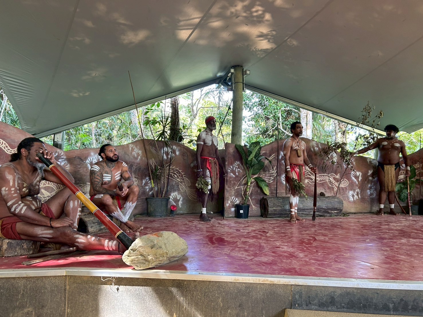 最後には、伝統的なダンスのショーを見ました。ディジュリドゥなどの楽器の演奏とともにダンスを見ることができ、目の前で見る彼らのダンスはとても迫力満点でした。ヘビの演目では実際に観客のそばへ行って狙ったり、希望者を募ってダンスの体験ができたりしました。