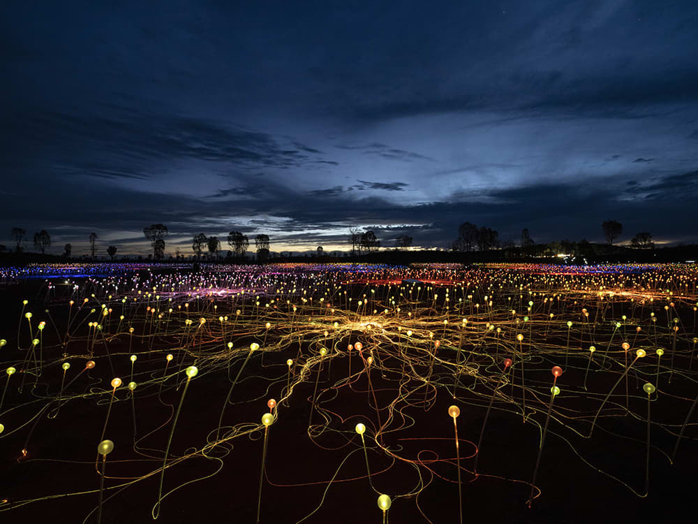 5万個のソーラーライトが織りなす「フィールドオブライト」。その後小高い丘でサンライズ鑑賞をお楽しみいただきます。