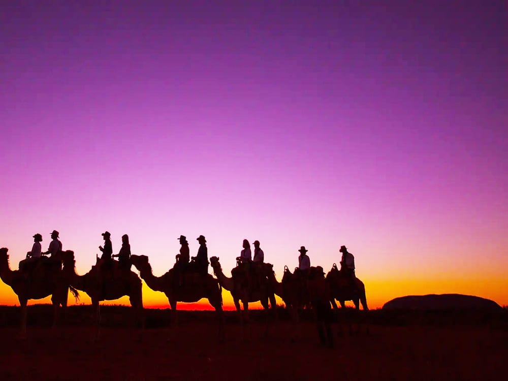 ラクダの背に揺られながら壮大なウルルを鑑賞サンライズorサンセットお選びいただけます。