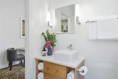 ハリウッドスター“アンソニー・パーキンス”にちなんだ部屋は、真鍮や大理石を使用した上品な仕上がりです。