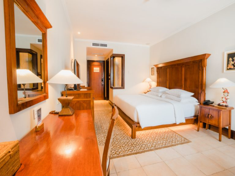 リゾート西側の建物の2階と3階、緑豊かなトロピカルガーデンに面したリゾートの東側に位置するデラックスルームは全室モダンでバリらしい家具が備わり、キングサイズのベッド1台またはツインベッドを完備しています。 専用バルコニーからは庭園、プールまたは市街の景色をお楽しみいただけます。