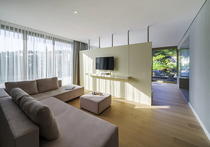 アドリア海との境界を感じさせないインフィニティテラス席のある「libertas fish restaurant」やワインセラーがあり、季節に応じて盛り付けやサービスを展開する「turquoise restaurant」、そしてなんとアドリア海の新鮮な幸と日本食を融合させた鉄板焼きや寿司を提供する「Umi Teppanyaki」どれも部屋付でご滞在時に予約可能です。