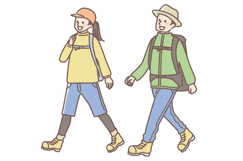 ハイキングコースには遊歩道が敷かれたり、歩きやすいように整備されていますが、スニーカーにパンツなど、歩きやすい服装が必須。散策時のカバンは両手が自由になるリュックサックがお勧め。夏の暑い時期は日焼け止めをしっかりと塗って、帽子、タオル、虫除けスプレーは欠かせない。冬や春は、寒くなるので防寒対策も忘れないようにしよう。