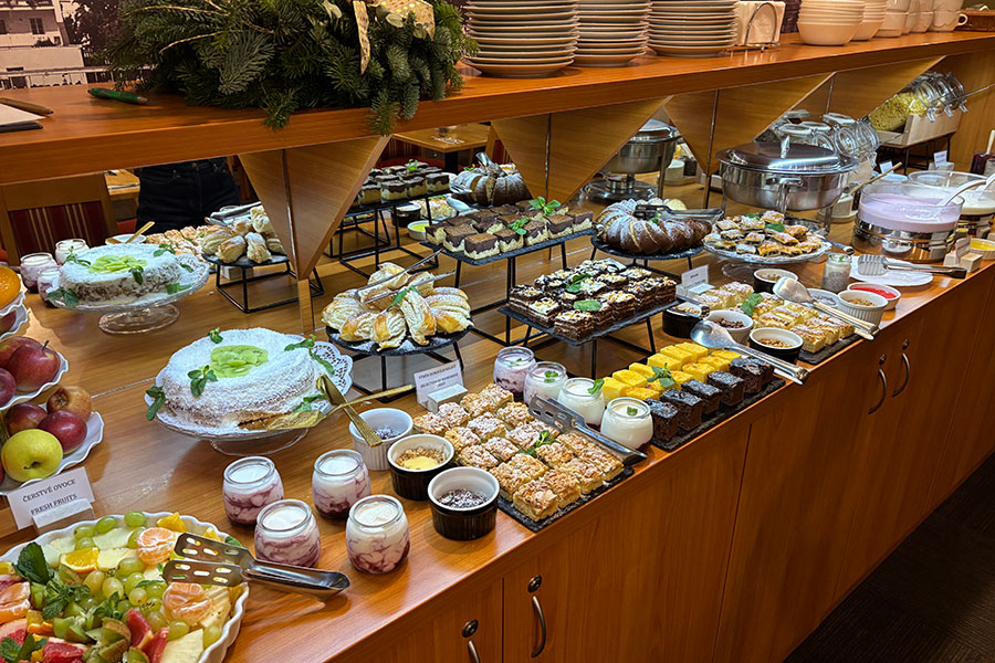 チャールズセントラルの朝食はバイキング形式で、全体の約半分をデザートが占めており、甘いもの好きの方には特におすすめです。中でも濃厚なヨーグルトは美味しく、弊社スタッフからも好評でした。