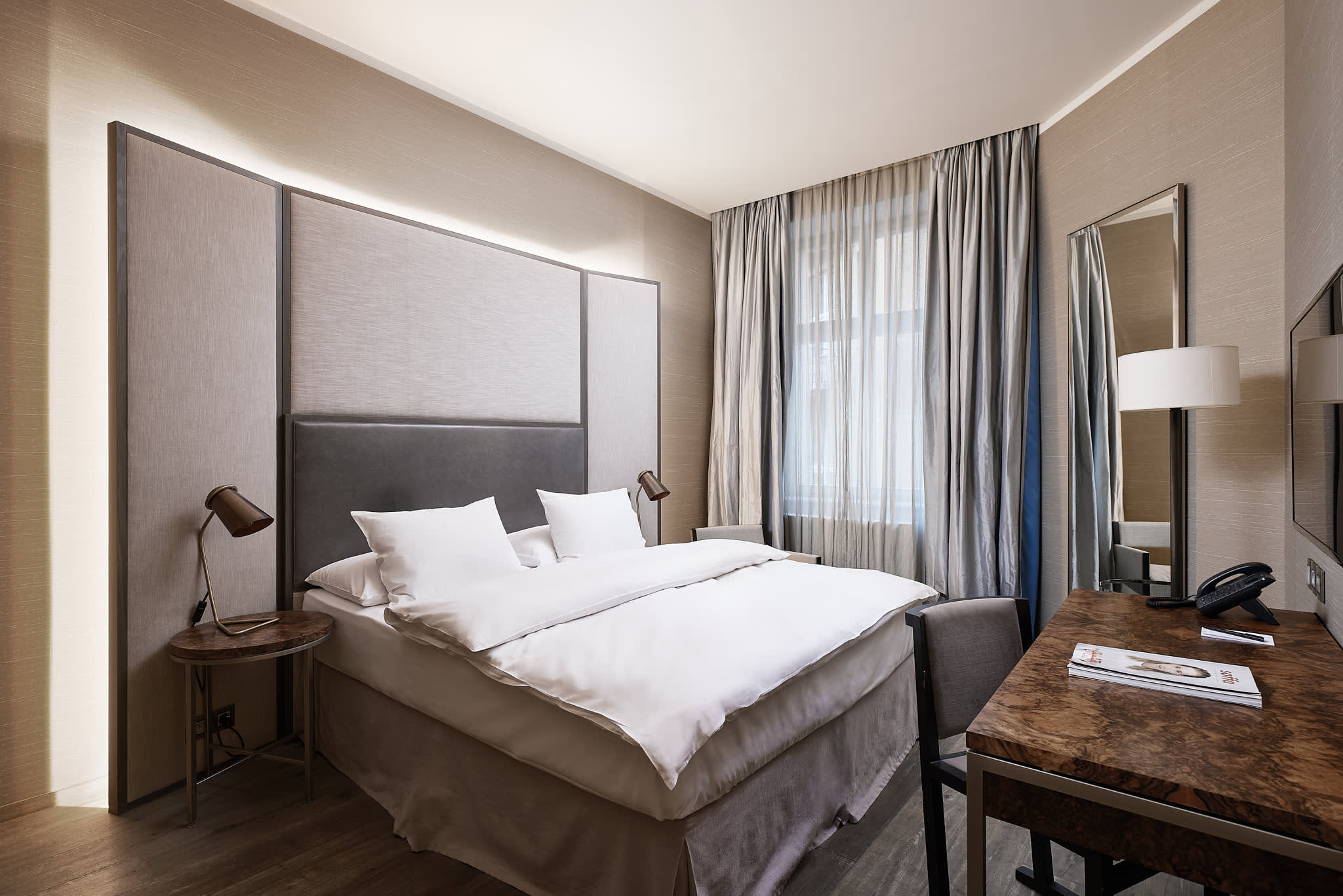 プラハ旧市街の中心に佇む「The Emblem Prague」は、装飾を抑えたモダンアートと落ち着いた照明が織りなす、大人の隠れ家のような五つ星ブティックホテル。他のラグジュアリーホテルとは一線を画す、広々とした空間と家のような居心地の良さが魅力。客室数は全59室と多すぎず、アットホームな雰囲気もポイント。スパやサウナを備えた最上階のリラクゼーション施設に加え、館内の複数ラウンジではコーヒーなどのドリンクが楽しめる。簡易キッチンも備え、長めの滞在にも対応。華やかなハネムーンよりも、静かに上質な時間を過ごしたい大人のバケーションにぴったりのホテル。