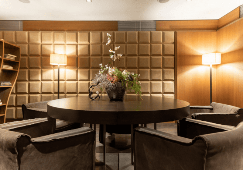 豪華さを誇示するのではなく、照明や色調を抑えたインテリアが静けさと上質さを演出。モダンアートとアールデコ建築が融合し、まるで自宅のようにくつろげる空間が広がります。