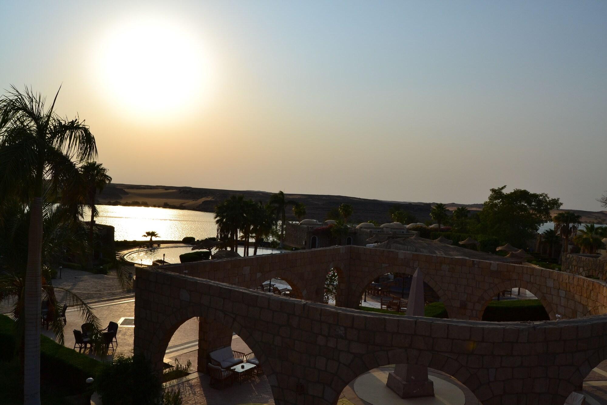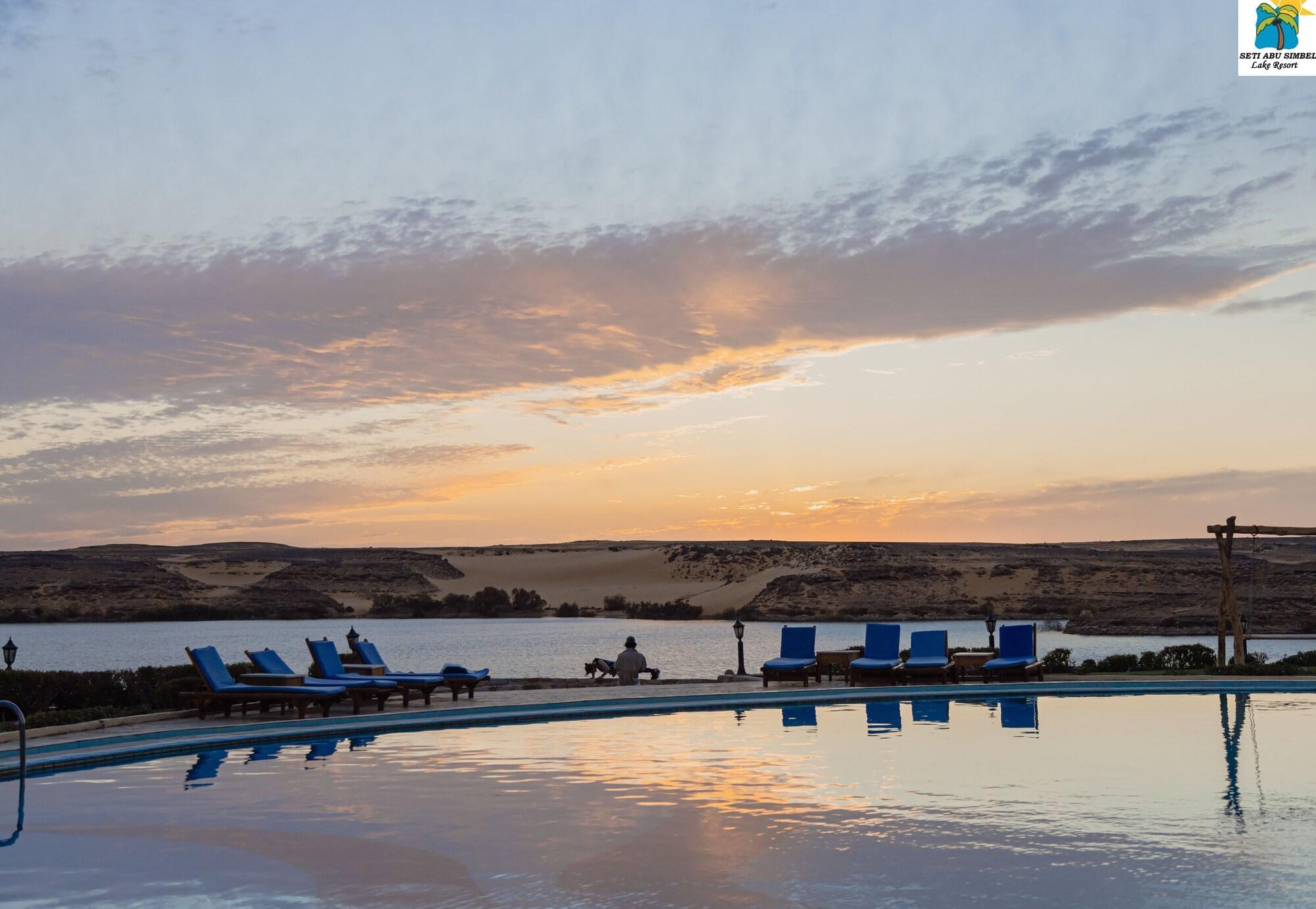 「セティ アブシンベル」は、アブ・シンベル神殿のほど近くに佇む、砂漠の中のオアシスのようなリゾートホテルです。館内は自然素材を生かした温かみのあるデザインで、客室も落ち着いたトーンで統一され、静かにくつろげる雰囲気が漂います。広い中庭やプールでは、観光の合間にのんびりと羽を休めることができ、旅の疲れを優しく癒してくれます。大規模ではない分、穏やかで居心地のよい空気が流れ、アブ・シンベルでの滞在をゆったり楽しみたい方にぴったりの一軒です。