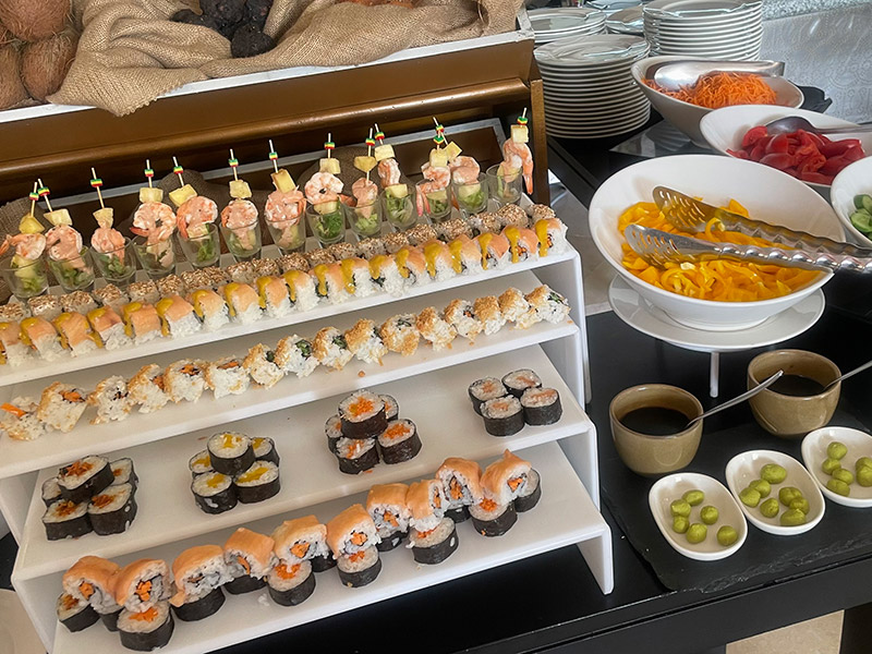 テラス席からは、リゾート内のプールや庭園、そしてナイル川の穏やかな景色を一望でき、開放感あふれるひとときをお過ごしいただけます。メニューも非常に豊富で、ピザやパスタなどの西洋料理から、サーモン巻やマグロなど日本風のメニューまで、幅広いインターナショナル料理をご提供しています。また、朝食ではモーベンピック名物のオープンビュッフェをお楽しみいただけ、観光や長距離移動の多いアスワンでも、朝からしっかりとエネルギーをチャージいただけます。しっかり食べて一日をスタートしたい方に、特におすすめのレストランです!