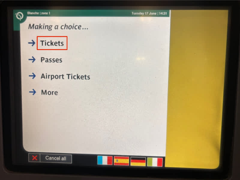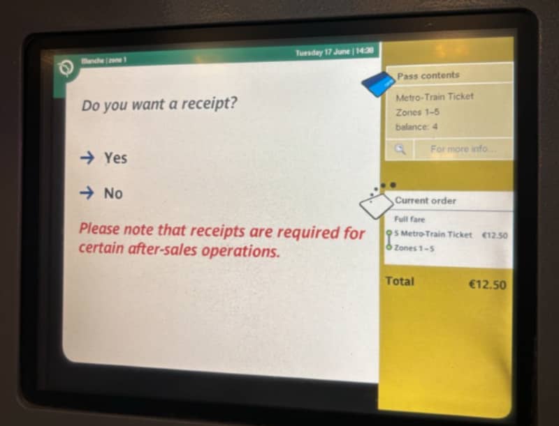 バス・トラム用の別チケット(1回2€)を別途チャージする必要があります。