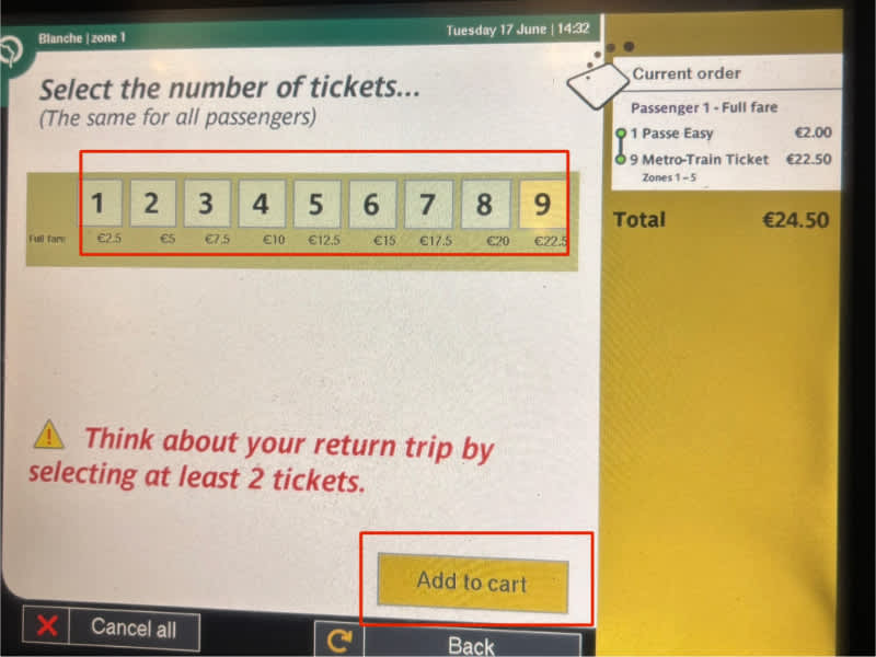 「Navigo Easy」の購入方法 (券売機)