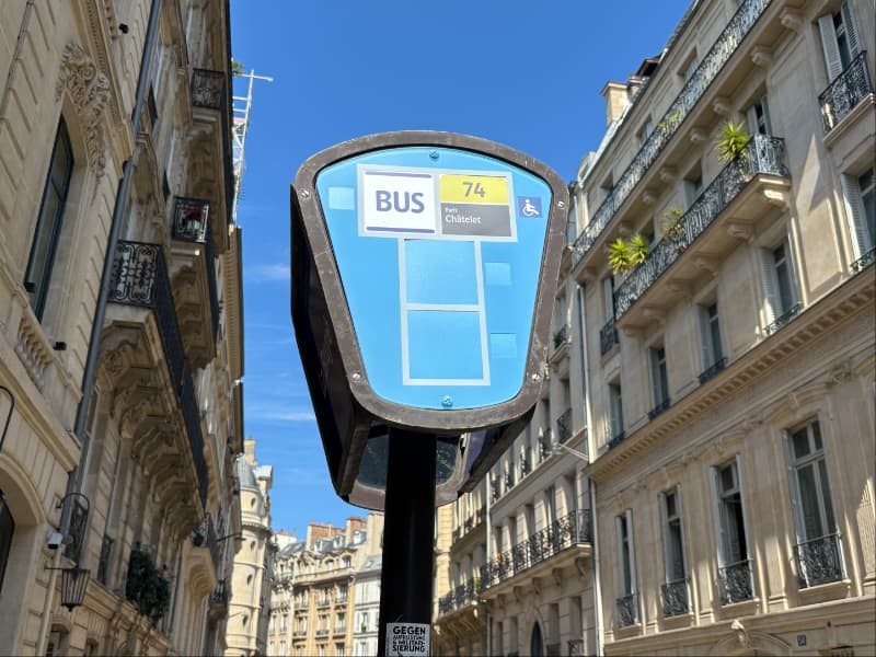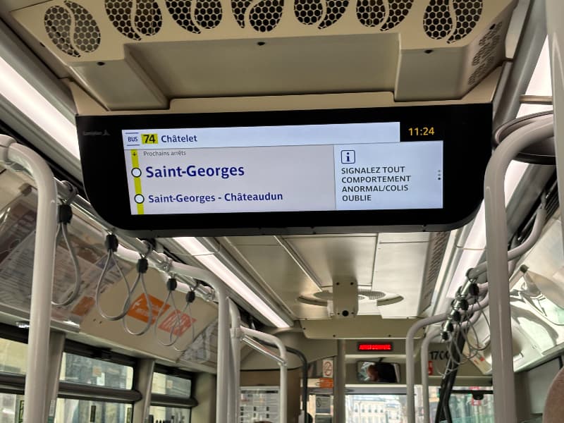 写真の場合、「74」がバスの番号、「châtelet」が終点です。