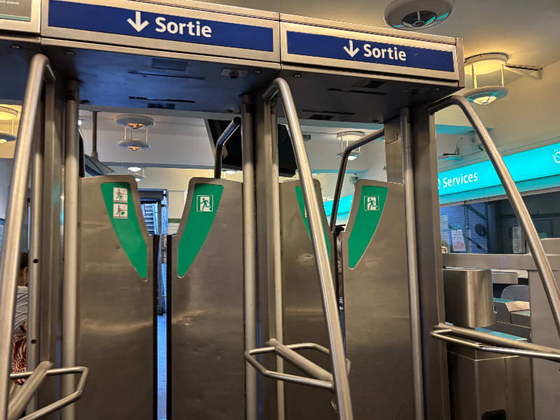 目的地に到着したら、再び改札を通ります。 RERはメトロとは異なり、改札を出る際もICカードのタッチが必要です。
