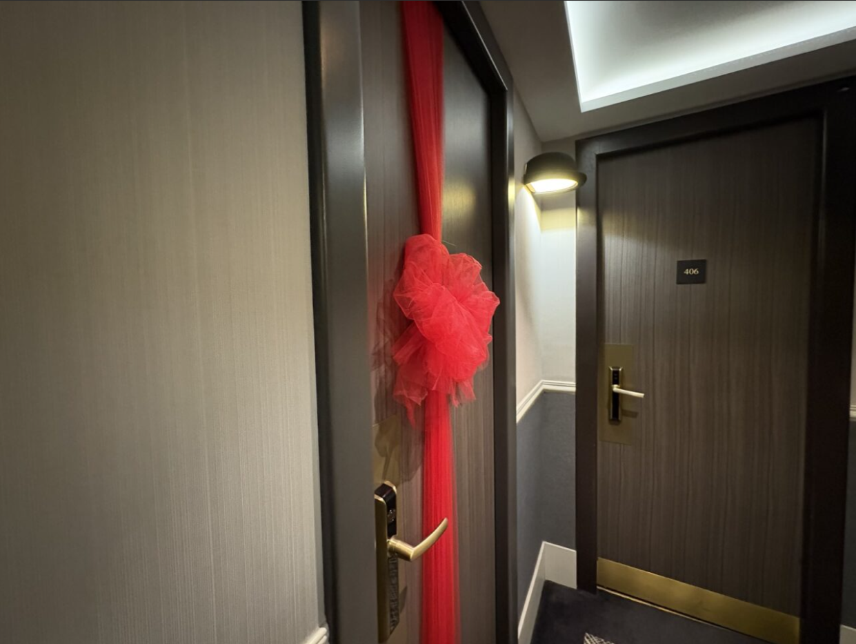 記念日にはお部屋の扉をさりげなくデコレーションし、到着した瞬間から特別感を演出してくれます。