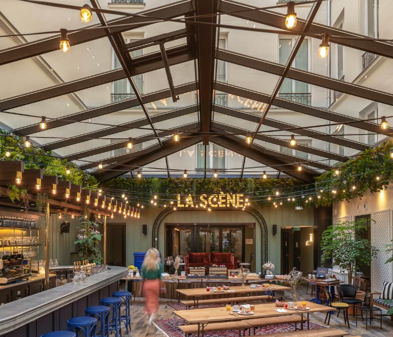 パリ・オペラ地区に位置するセンス抜群のブティックホテル。青×白を基調とした客室はモダンで可愛らしく、フランスらしい色づかいが魅力です。天井の高いレストランは自然光がたっぷり入り、開放感たっぷりの明るい空間。館内は全体的に清潔感があり、地下階にはジャグジーバスも。フロントもおしゃれな雑貨店のようで、特に女子旅やカップル旅行におすすめ。ほどよくゆるくて気取らない雰囲気も魅力です。
