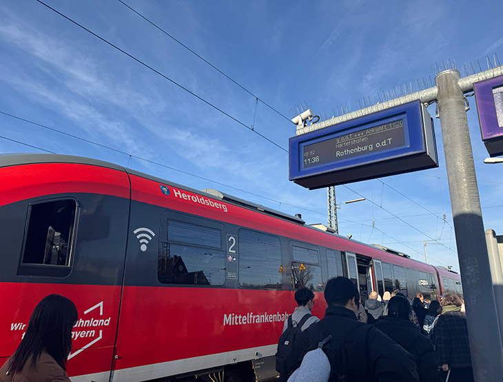 今回は「Nürnberg Hbf駅」から出発し、途中何度か電車を乗り換え、「Rothenburg ob der Tauber駅」へ。