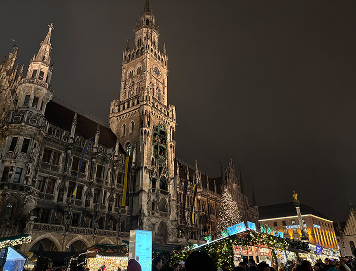 ミュンヘン新市庁舎の前をメインに、大きなクリスマスツリーとともに、キラキラと賑やかなマーケットが広がっていました。