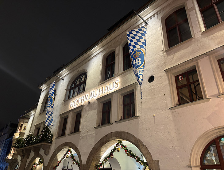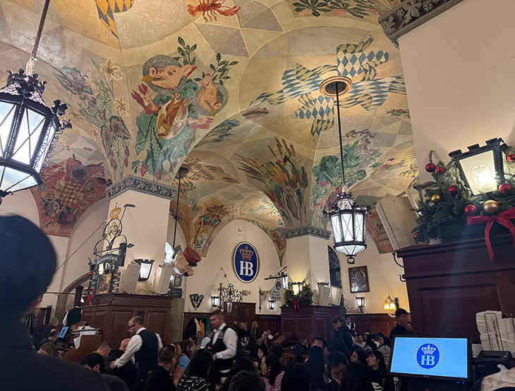 夕食は、ミュンヘンの有名なビアホール「ホフブロイハウス」(Hofbräuhaus München)に行き、バイエルン料理を楽しみました。