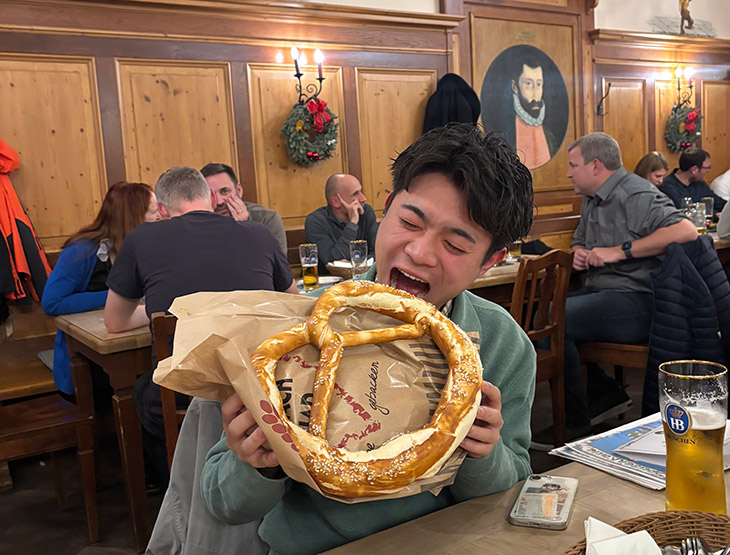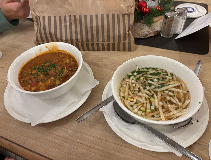 一緒に注文したスープにつけて食べると、相性抜群でよりおいしく楽しめました。ミュンヘンに訪れたら、ぜひ行ってみてください!