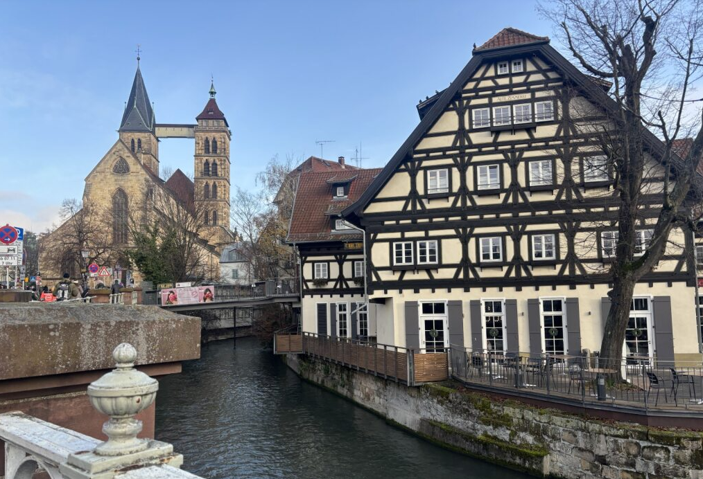 エスリンゲンはドイツ南西部、バーデン=ヴュルテンベルク州に位置する歴史の深い中世都市です。シュトゥットガルトから東へ約10kmと近く、日帰り旅行にもぴったり。木組みの家が密集する旧市街には、中世の街並みがそのまま残っており、ドイツらしい景観がぎゅっと詰まっています。駅に到着した瞬間から歴史ある街の雰囲気を感じられ、歩いているだけで楽しくなります。