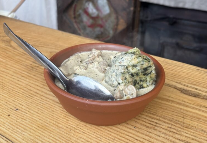 食べ物は、定番のソーセージだけでなく、ジビエ料理やケバブなど、他のクリスマスマーケットではあまり見かけないものもありました。冷え込んできたのでスープをいただきましたが、体の芯から温まり、とてもおいしかったです。