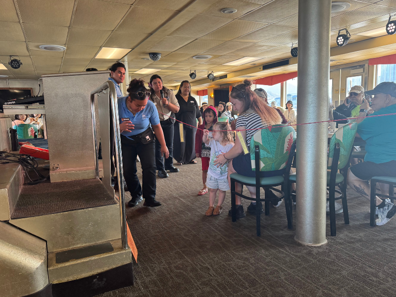 この日は参加していたお子様がボランティアとしてお手伝いしながら進行する場面もあり、船内は和やかな雰囲気。