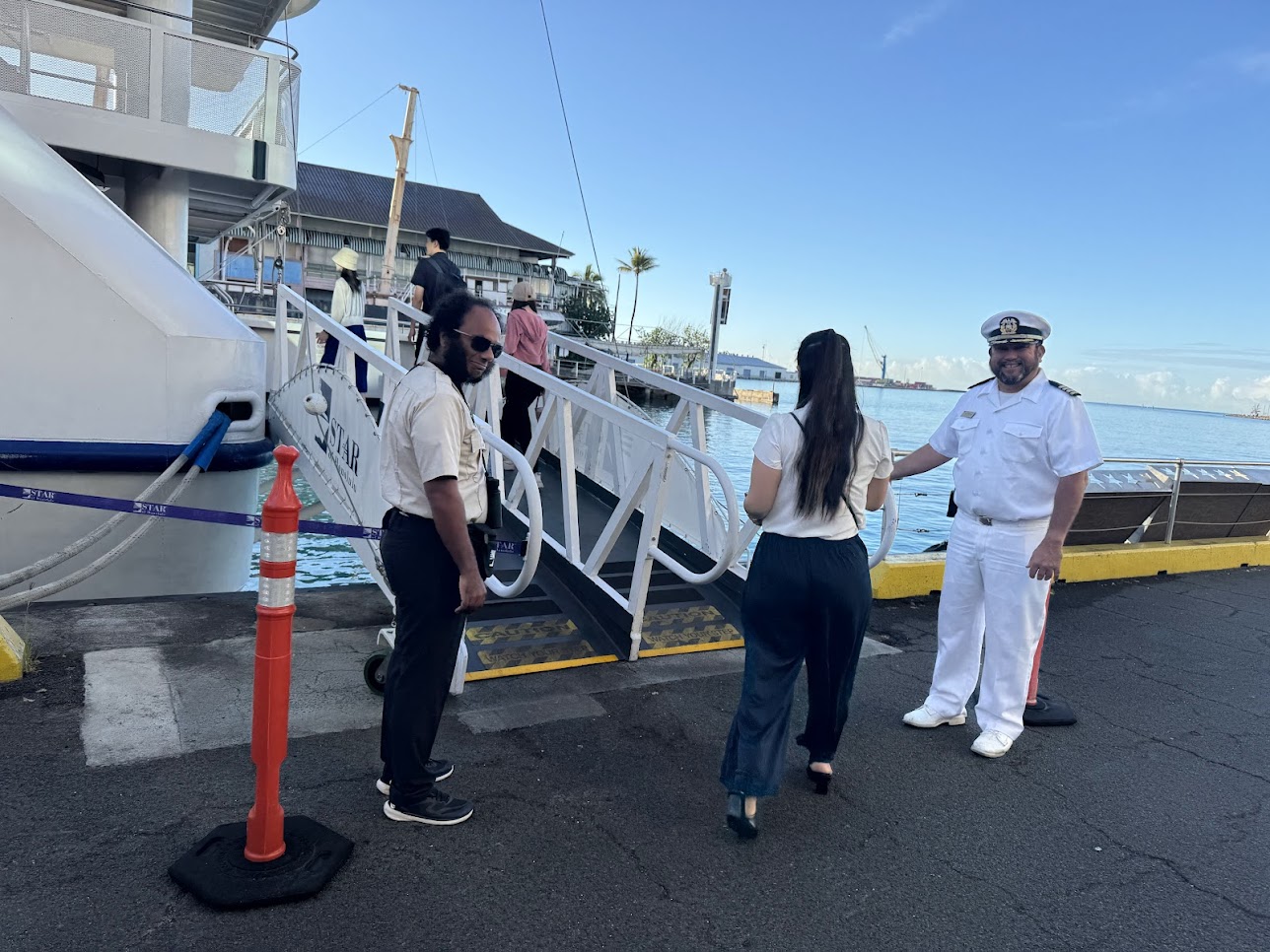 アロハタワー周辺から出航するスターオブホノルル号。