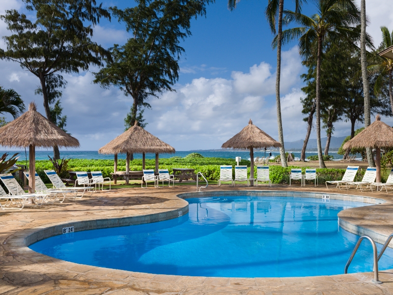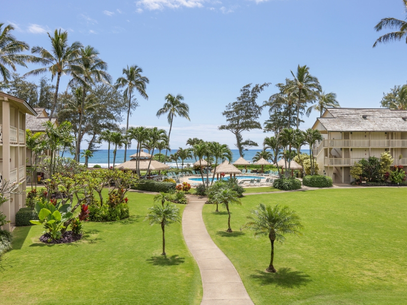 ロイヤルココナッツコーストのビーチの目の前に建つリゾート。 約200部屋のみの小さくてかわいいリゾートは、1つのプールを囲む様に設計されている。 全てのお部屋のバルコニーからは、ガーデンの緑とプールや海が見える。 駐車場の向かいは、ココナッツマーケットプレイスがあり、小さなレストランやカフェ、スーパーもあり不自由なく過ごせます。 プールバーでの無料のコーヒーサービスが嬉しい。 小さなリゾートで、ゆっくりとしたカウアイの休日を過ごしたい方へオススメです。