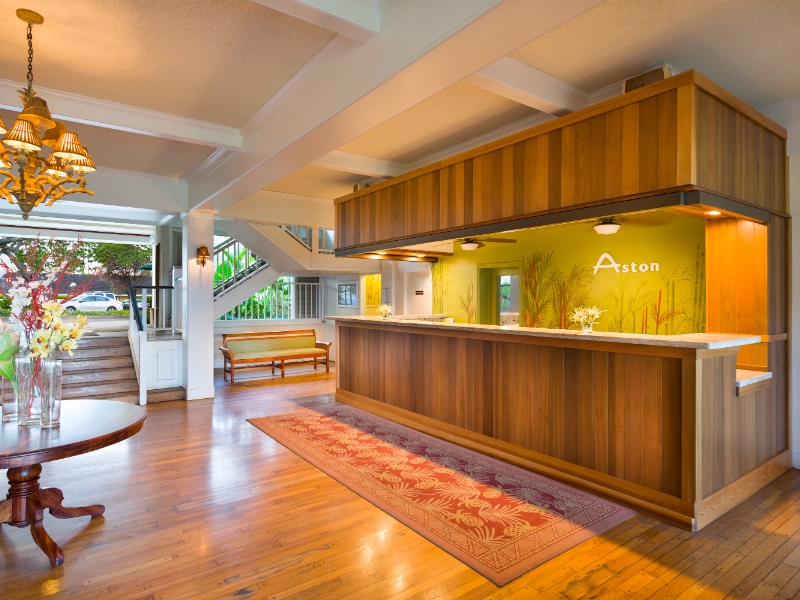 オープンエアのフロントデスクでは、温かなスタッフがハワイホスピタリティーで出迎えてくれます。