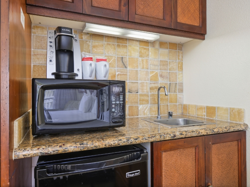 電子レンジ、コーヒーメーカー、アイロンなど必要な備品は揃っています。