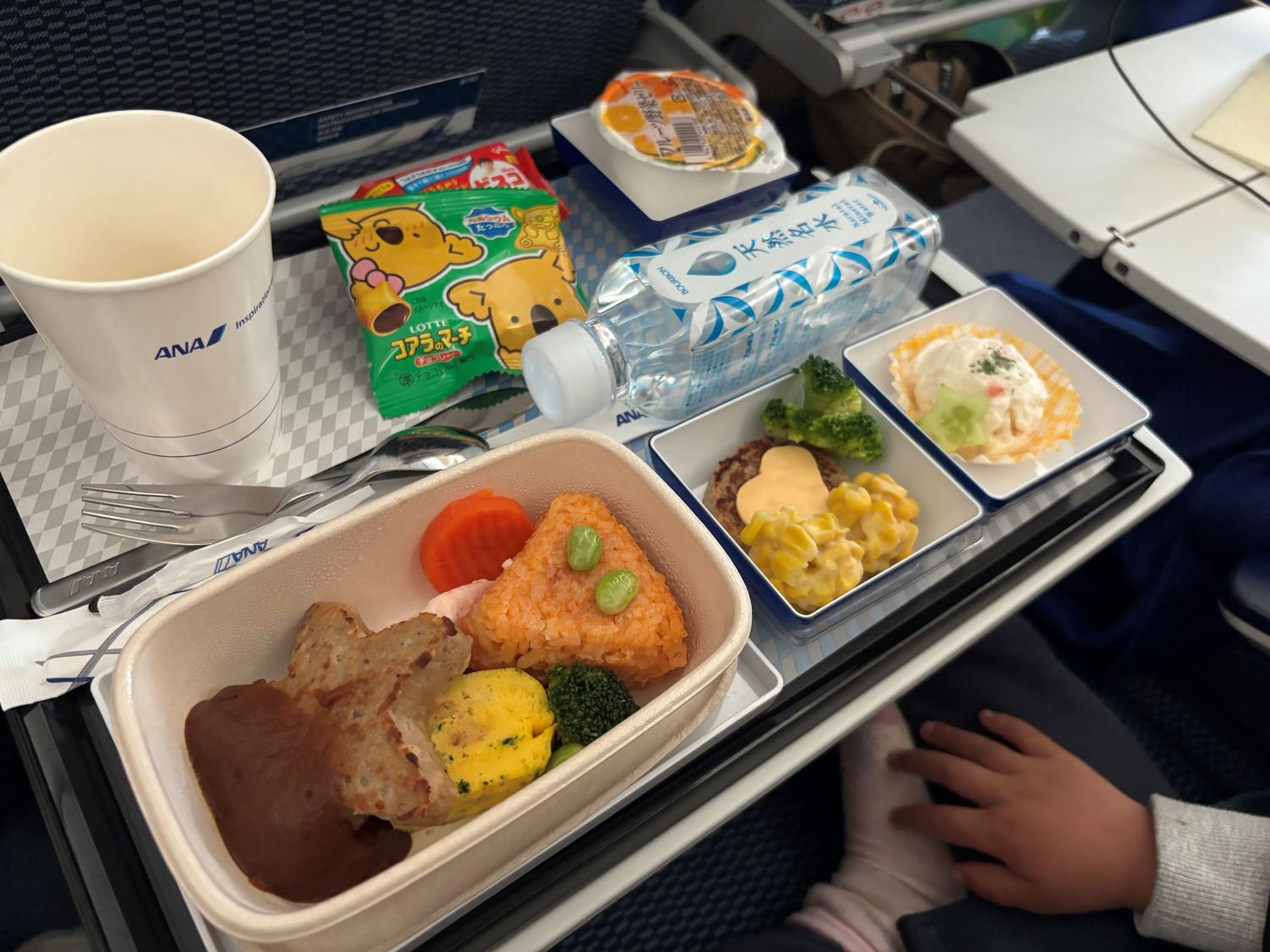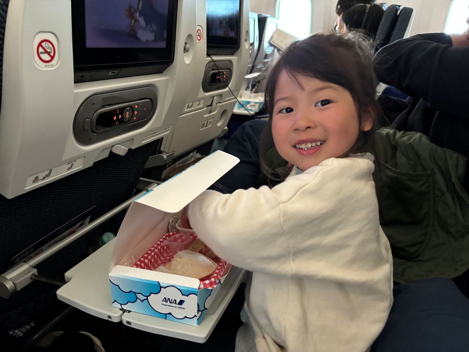 お気に入りのアニメや映画を楽しみ、機内食をしっかり食べたあとは、ぐっすり就寝。
