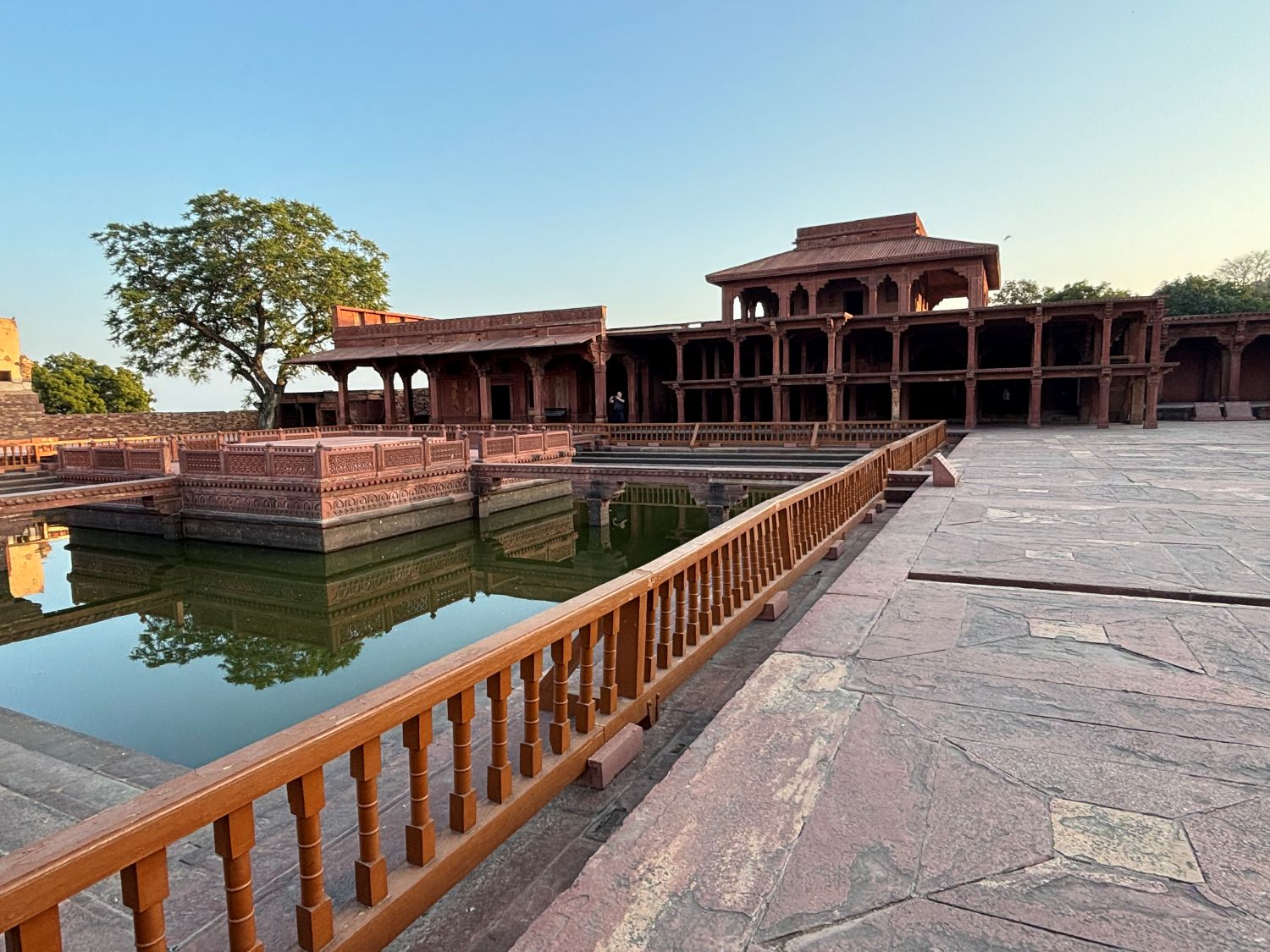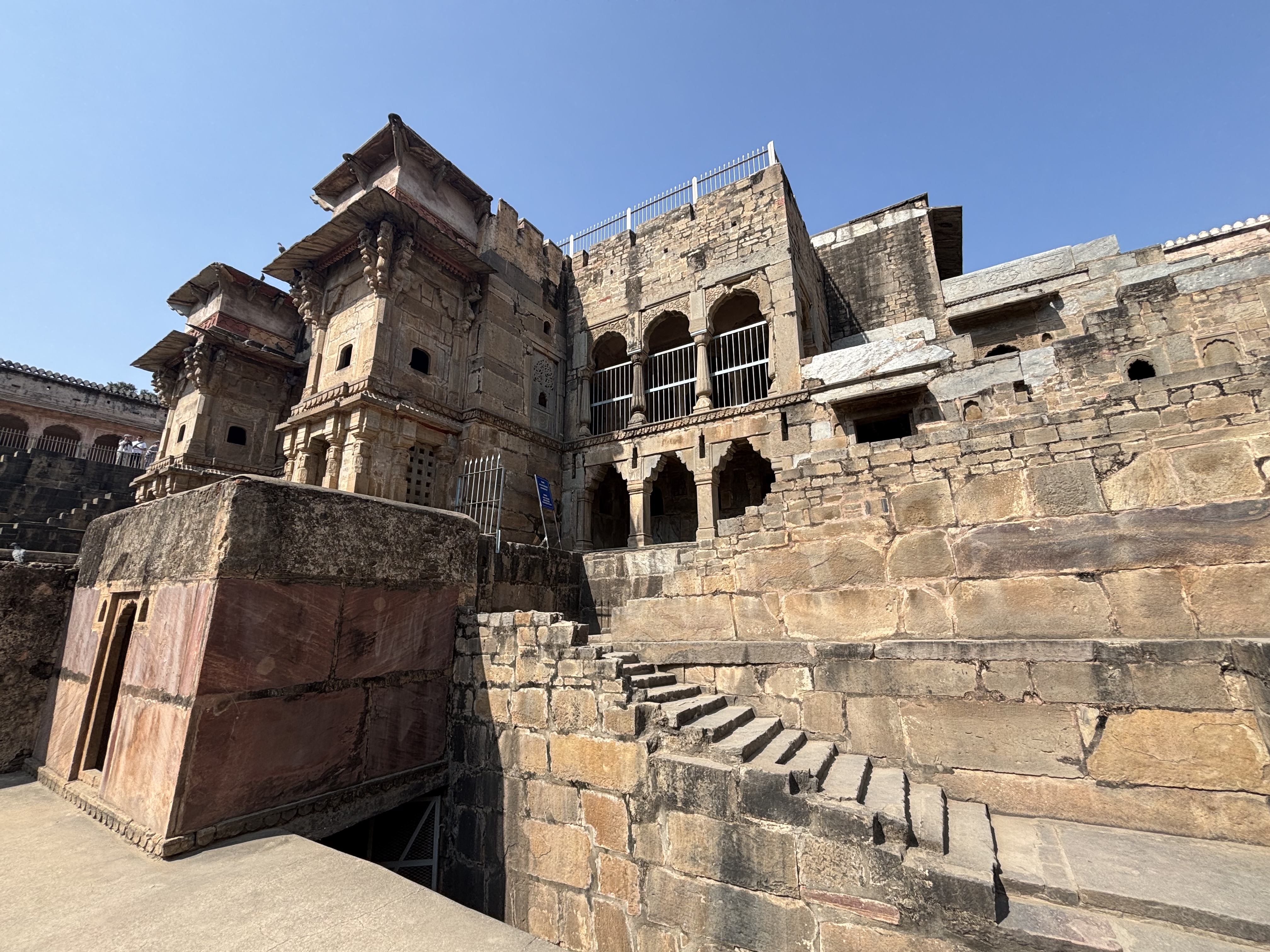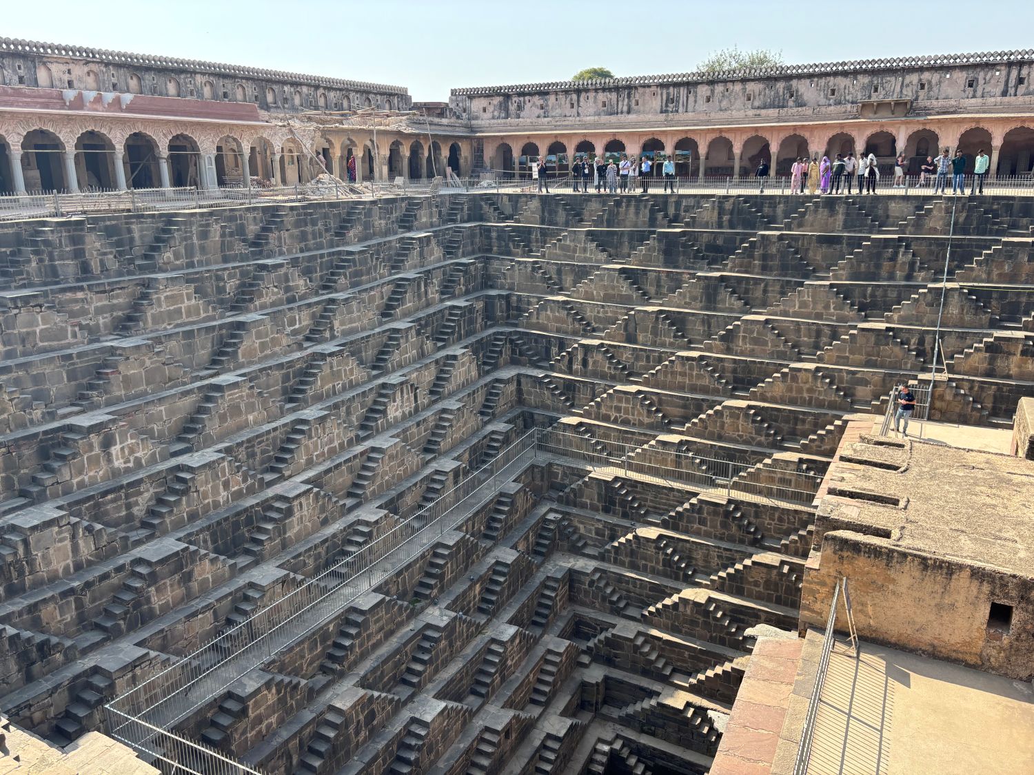 整然と並ぶ無数の階段が井戸の底へと吸い込まれていく光景は、静かなのに圧倒的。装飾の華やかさではなく、規則正しさが生み出す美しさに息をのみました。