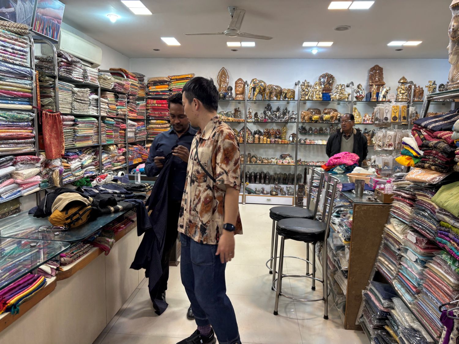 本来は朝食を食べてからの訪問予定でしたが、朝5:50ロビーに集合してサリーのレンタルショップへ行き着付け