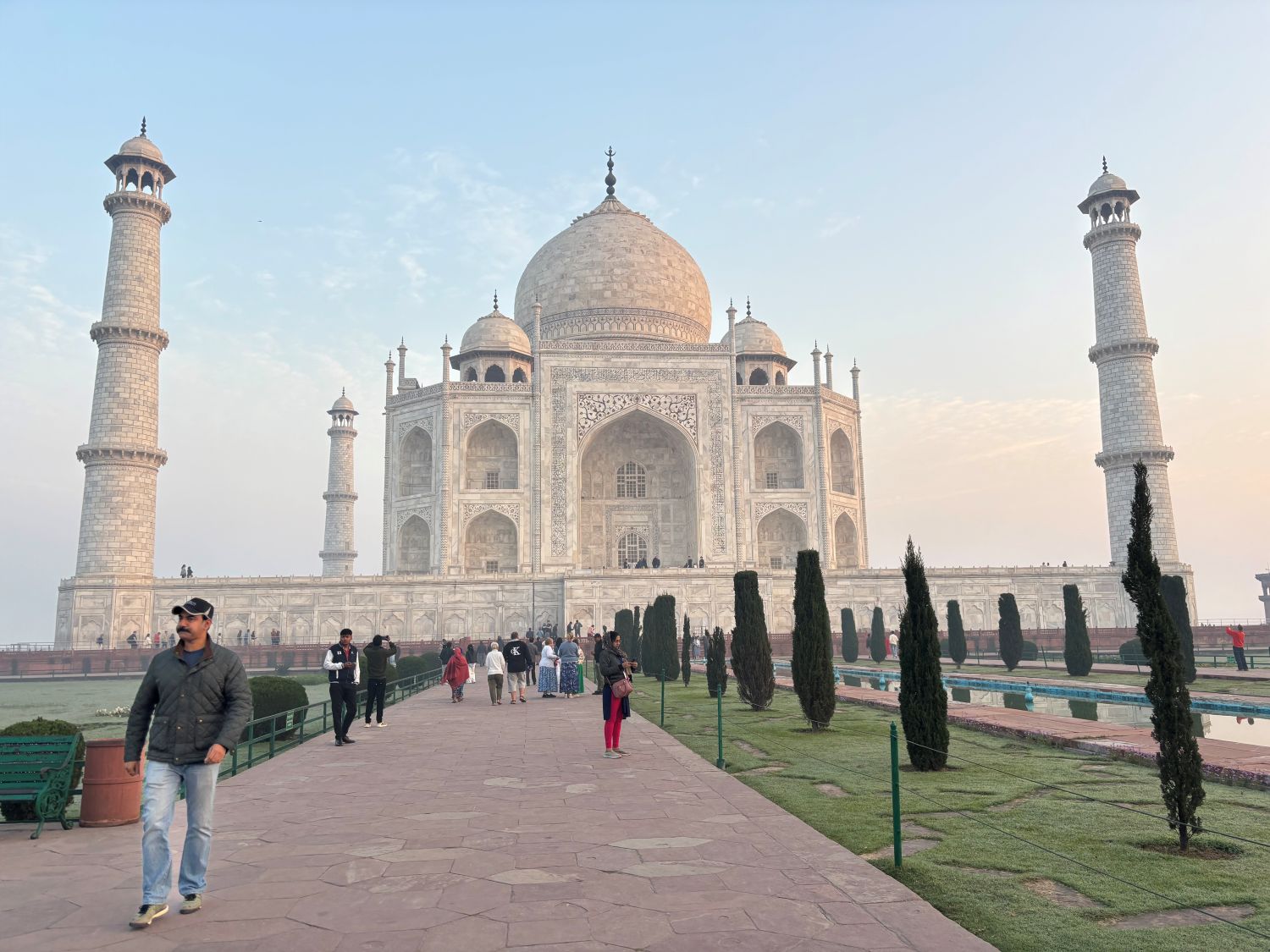霧が少しずつ晴れていくにつれて、タージの輪郭がくっきりと現れていく様子は、まるで舞台の幕が上がる瞬間のようでした。