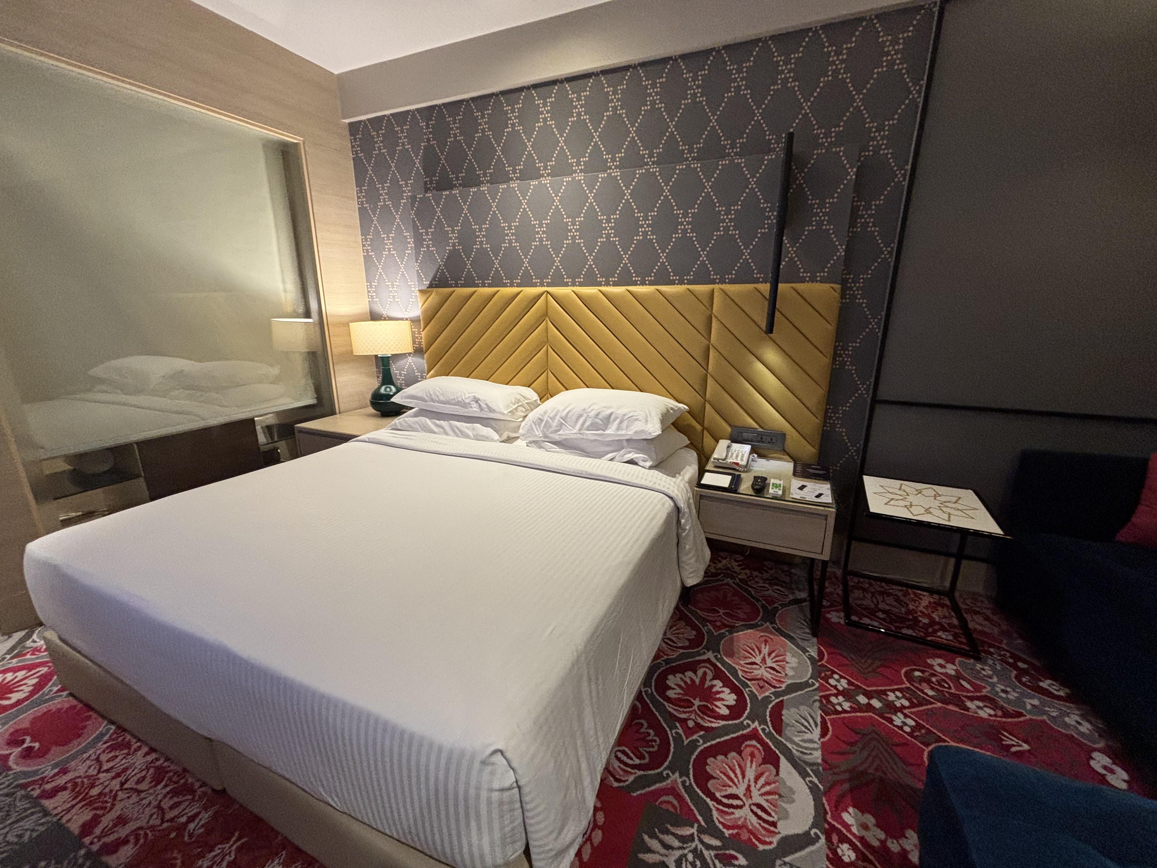 お部屋は清潔感たっぷりでベッドも広々。観光で歩き疲れた体をしっかり受け止めてくれる安心感がありました。