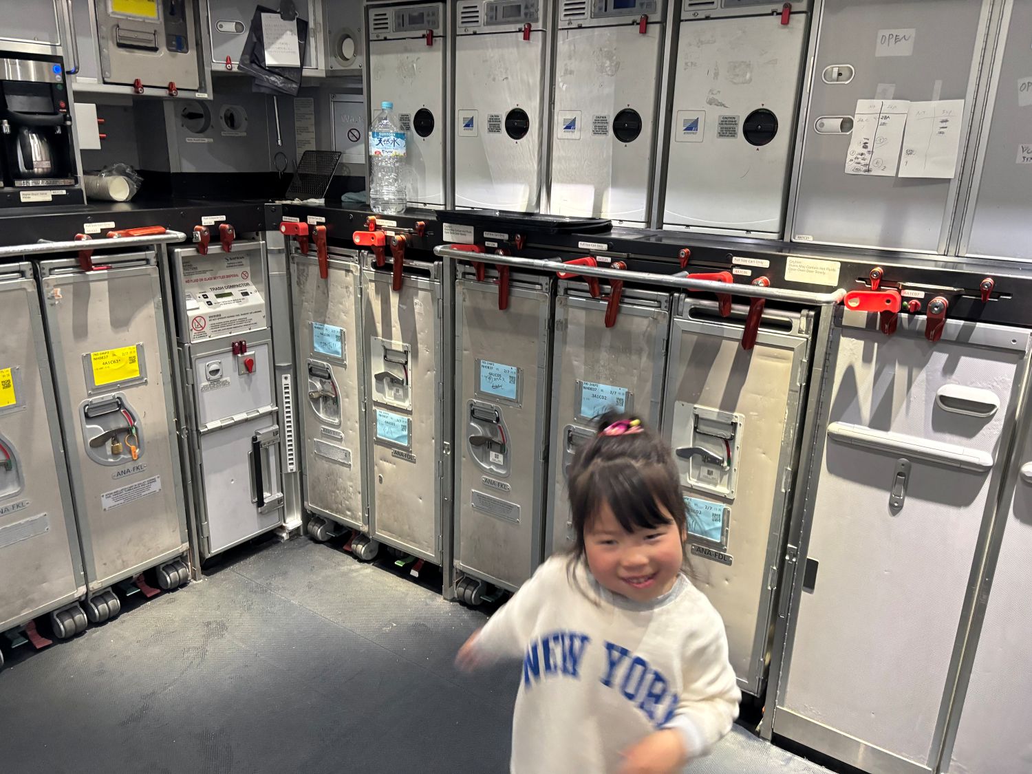 途中で目が覚めてしまっても、機内後方のスペースを少しお散歩したり、CAさんからお菓子やジュースをいただいたりと、終始ご機嫌で過ごすことができました。