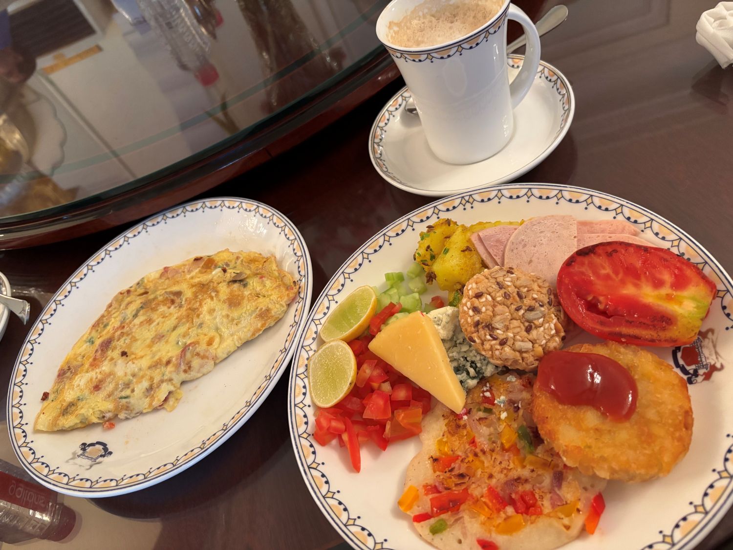 アグラ城の観光を終え、サリーを着替えてホテルへ戻り朝食を食べました。