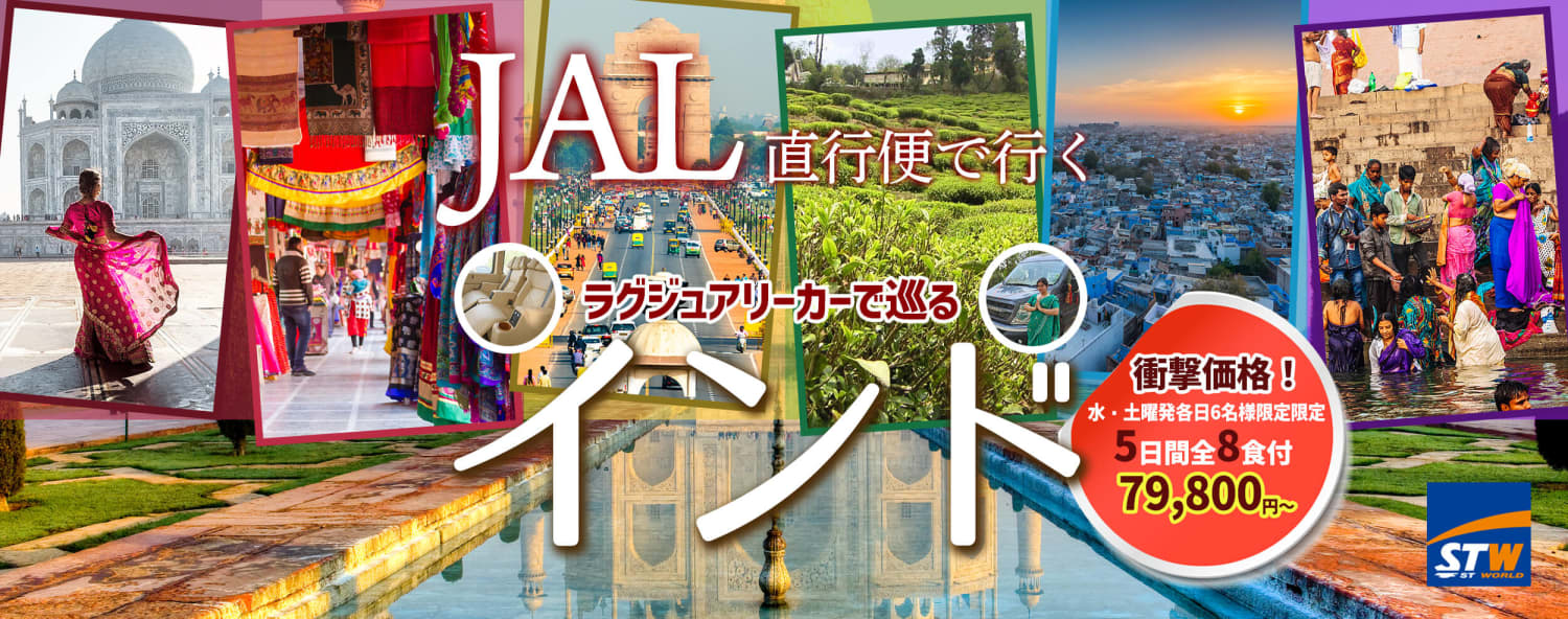 【トラベルズー掲載】<衝撃価格>JAL直行便で行くインド 水・土曜出発各日6名様限定|日本語係員同行・全8食付もくじ