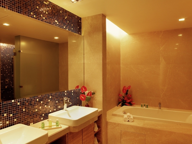 キングベッド1台とソファベッド1台のお部屋です。バスルームが2部屋ついているため、他の方の入浴が終わるのを待たずにシャワーを浴びることができます。最上階に位置し、ビュッフェ式ディナーや専用クラブラウンジでの18時30分から20時30分のハッピーアワーもご利用いただけます。