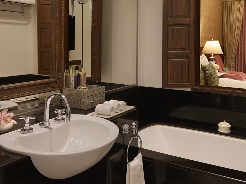 宮殿のヘリテージ棟に位置するこれらのお部屋からは、緑豊かな庭園を一望できます。伝統的なラージャスターンの木細工や美術品、貴重な絵画が彩りを添え、さらに現代的な設備も整えております。