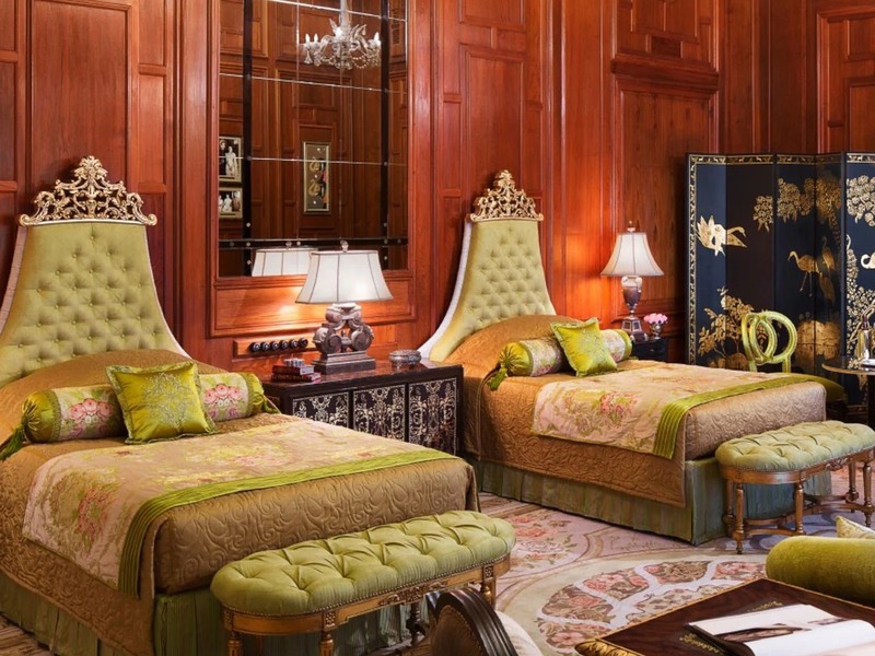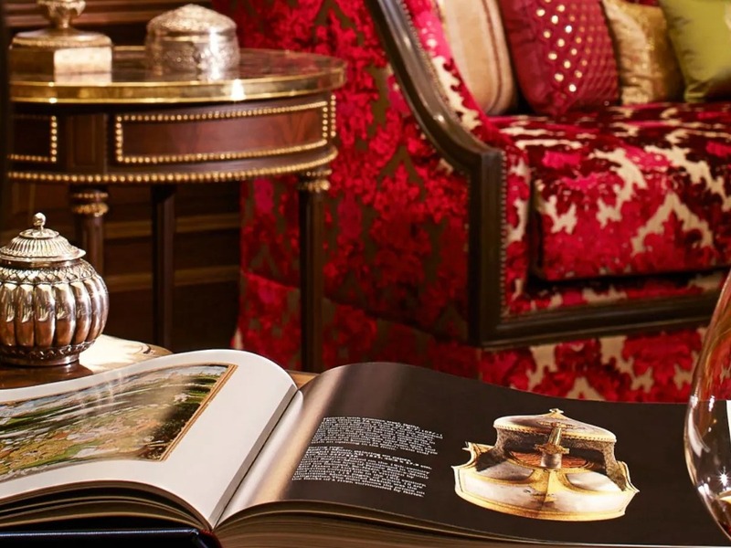大きなフレンチウィンドウからは、美しい庭園の眺めを楽しめます。かつて王族の私室として使われていたこのスイートルームには、ベッドルーム、応接間、リビングルームがそれぞれ独立して備えられています。赤と金で整えられたこちらのお部屋は、まさに王族そのもの。贅沢な旅のひと時をこちらのお部屋でも過ごしてみませんか?