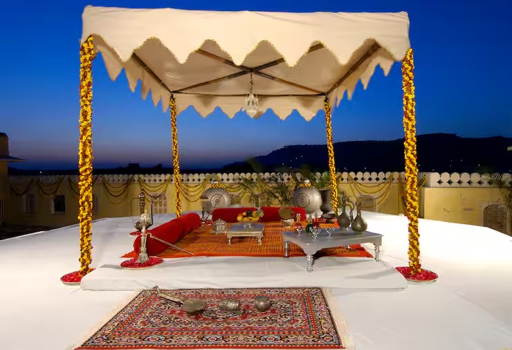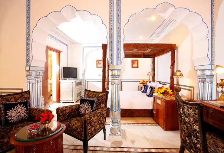 ジャイプールにあるラージパレスは、2世紀半以上も前に建てられた宮殿を改装した壮大な歴史的ホテルです。1995年に改修工事が行われ、1997年8月10日に壮大な歴史的ホテルとしてオープンしました。「ミュージアムスイート」、つまり各スイートにプライベートミュージアムを備えたスイートも設けられています。また、このホテルはインド政府から「インド最高の歴史的ホテル」に選ばれ、ワールドトラベルアワードでは7回連続で「世界を代表する歴史的ホテル」にも選ばれています。