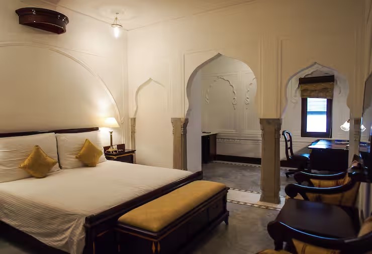 王室の伝統が感じられる客室には、美しいラジャスタニのアート作品、イタリア産大理石の床、珍しい木材が飾られています。広々としたバスルームから市街のパノラマビューまで、豪華なライフスタイルを一望できる客室には、時代の家具やお客様のニーズに合わせてさまざまなサイズがご用意されています。