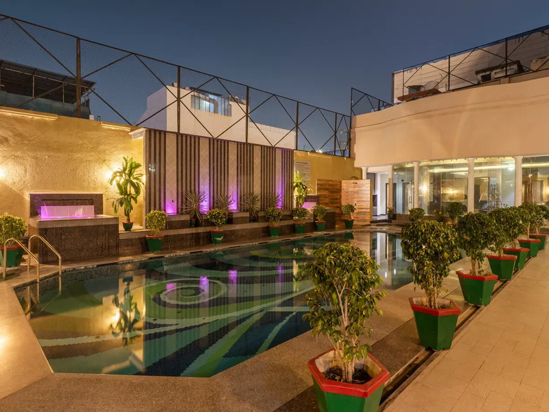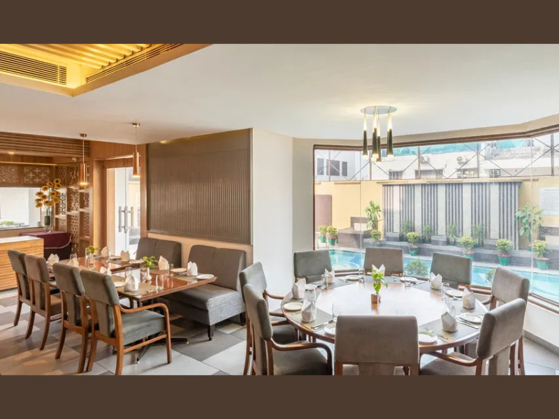4つ星ホテルの「ザ アマヤー」には、敷地内にプールやフィットネスセンター、ラウンジバーなどが完備されています。さらに館内レストランやバーで食事も完結できるため、外出せずとも満足度の高い滞在が叶います。バンケットや会議室もあり、イベントやビジネスにも対応。カントンメント地区という静かなエリアに位置し、ベナレスの喧騒を程よく離れて過ごせるのも魅力です。