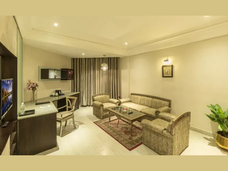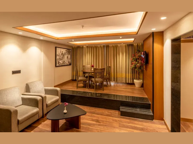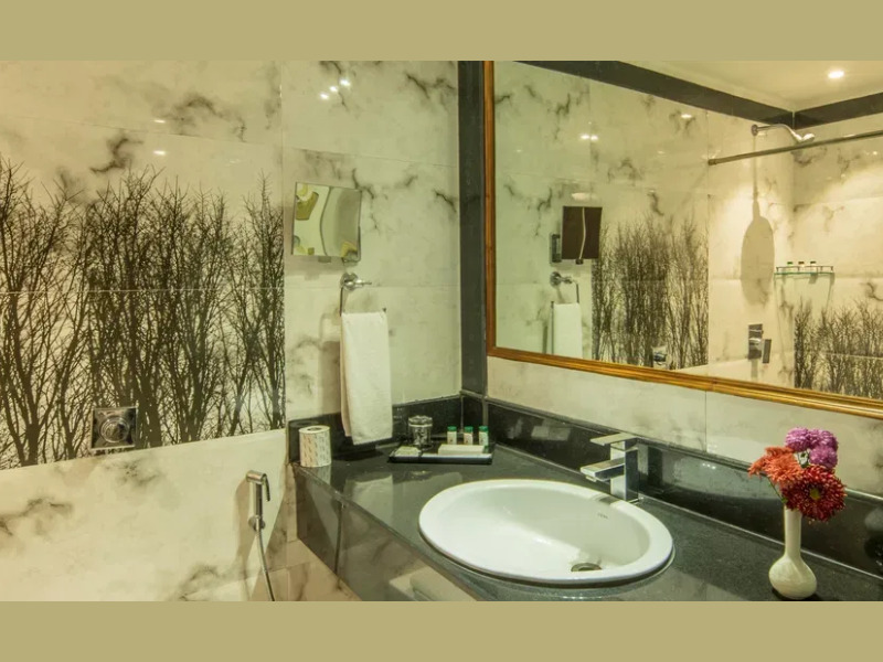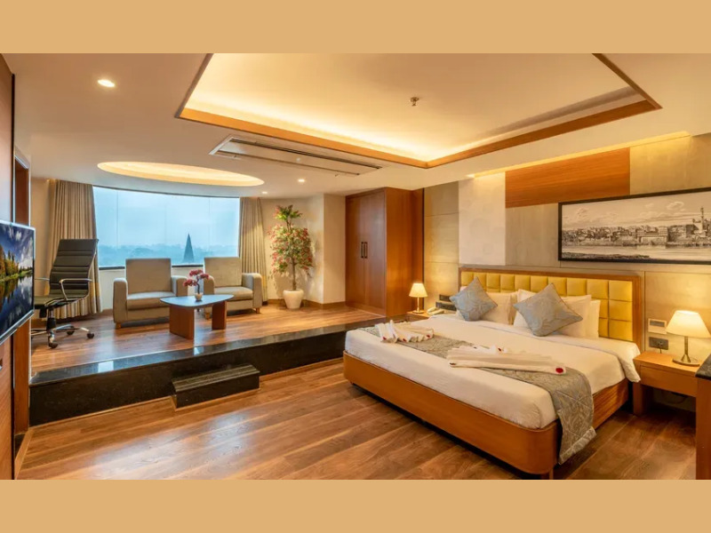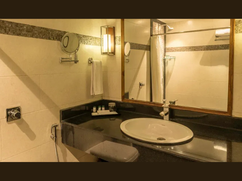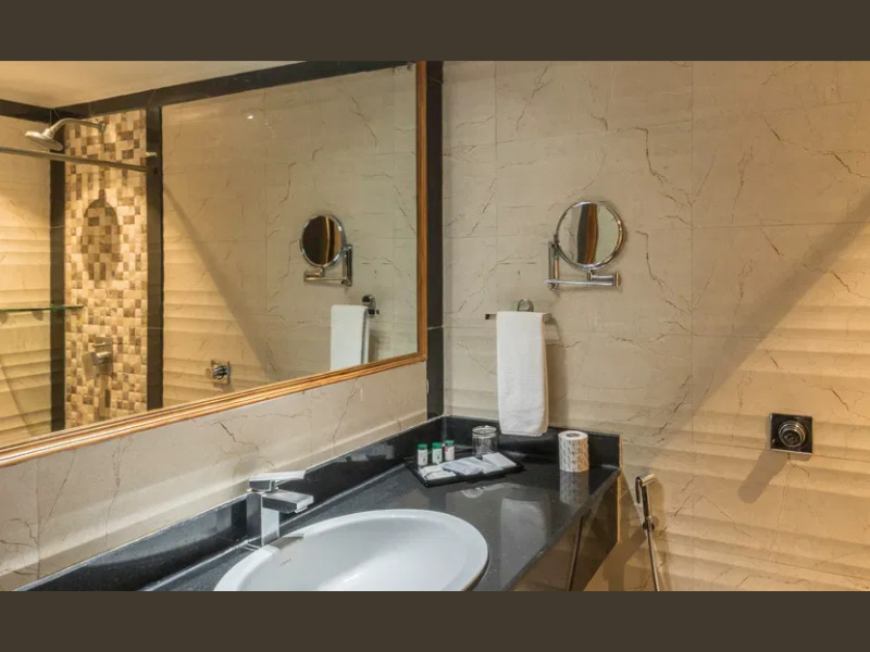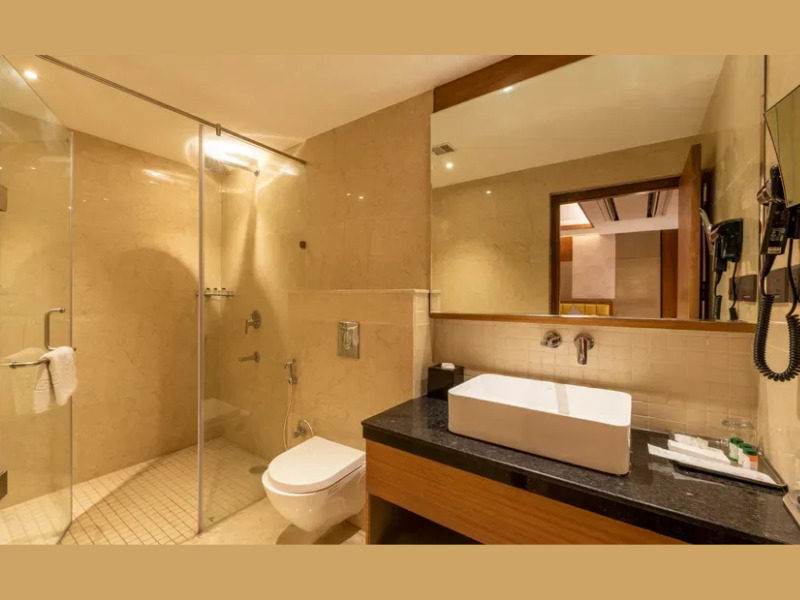 ジャグジー付きの広々としたバスルームは、最高のくつろぎ空間を提供します。居心地の良いソファとダイニングスペースを備えたリビングルームは、ミーティングやリラックスタイムにおすすめです。電気ケトル、ミニバー、バスローブとスリッパ、ワードローブ、Wi-Fi、ルームサービス、32インチテレビなどの設備を備えたバラナシのスイートは、お客様に高品質の快適さをお届けします。