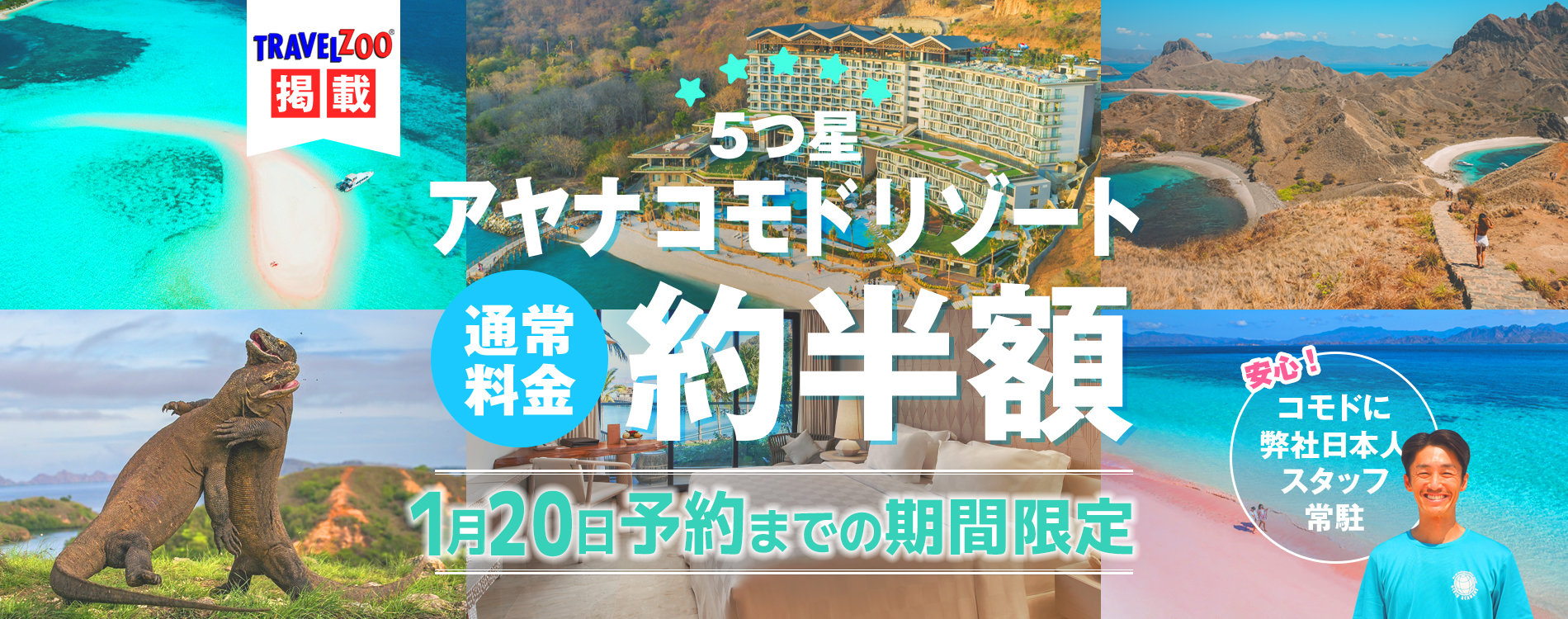 1月20日迄期間限定*最大50%OFF【成田発/安心の日系JAL利用】アヤナコモド(Ocean View Room)宿泊 6日間|コモドドラゴンに会える!国立公園周遊ツアー付き