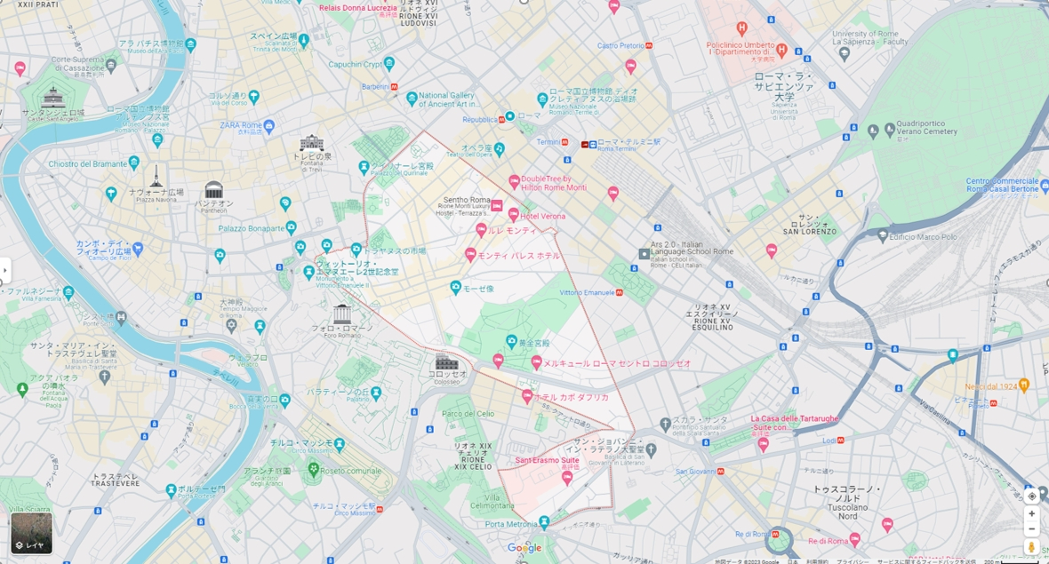 ローマの旧市街は22の地区に分かれており、その1つであるモンティはトレビの泉とコロッセオの間に位置する地区です。