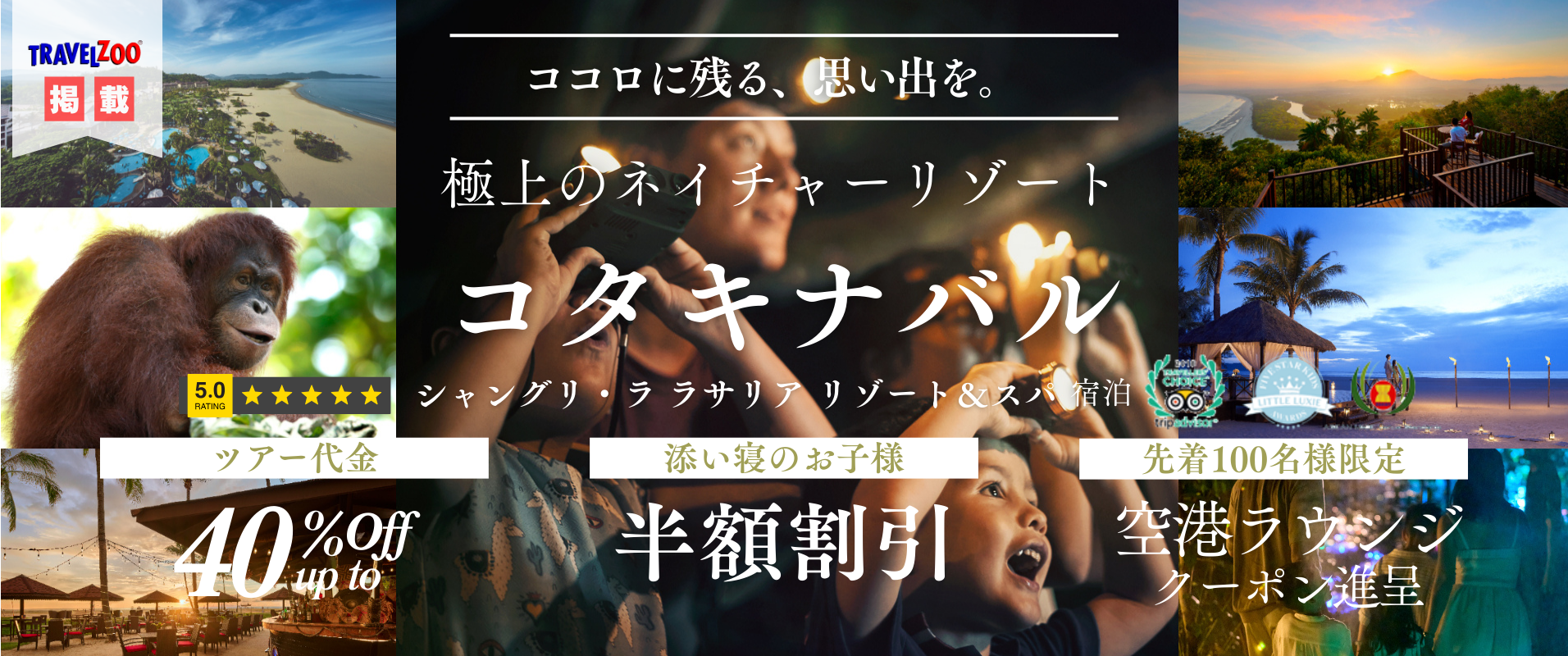 【トラベルズー掲載】<2月17日までの申込限定>最大40%オフ+お子様半額!大自然を満喫コタキナバルへ!もくじ